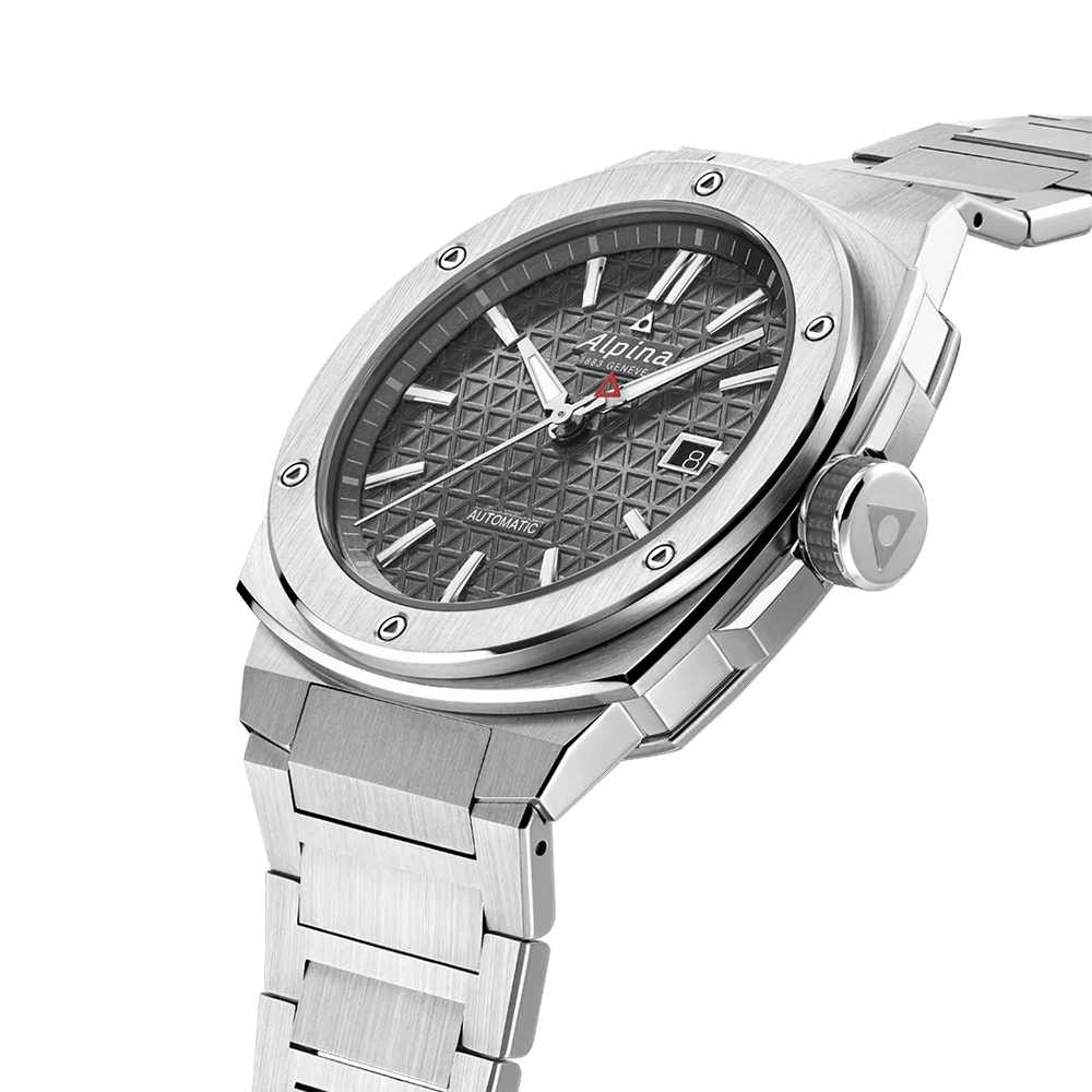 Сапфірове скло з антивідблисковим покриттям. На мітки та стрілки нанесено люмінесцентне покриття SuperLumiNova. Прозора задня кришка. Циферблат з патерном трикутників, що є посиланням на логотип Alpina у формі червоного трикутника «Alpiner».