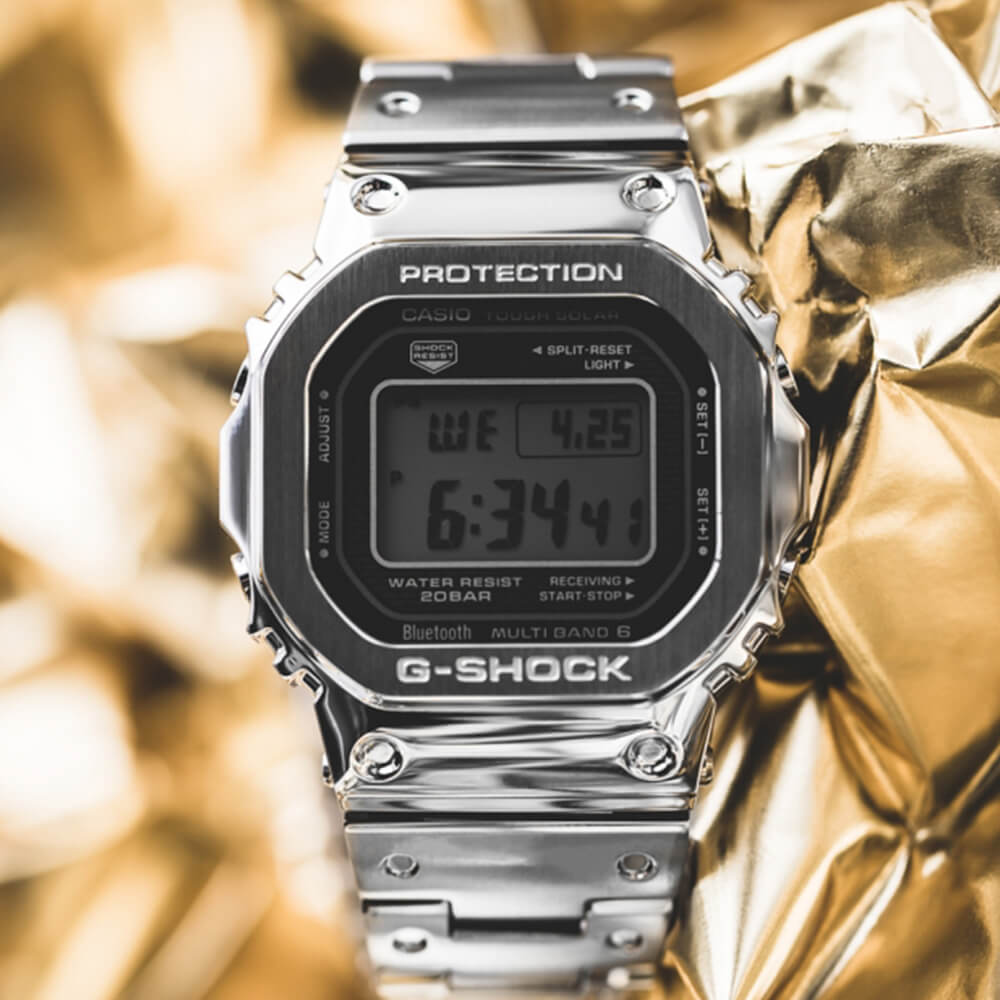 Технологія Multi Band 6 дозволяє приймати сигнали від 6 радіовеж, розташованих у різних точках планети - вони передають тимчасові сигнали від певних атомних годинників. Час коригується радіосигналом на території майже усієї Європи, США, Японії та Китаю. Плюс годинник синхронізується з телефоном через Bluetooth® через програму G-SHOCK-Connected.