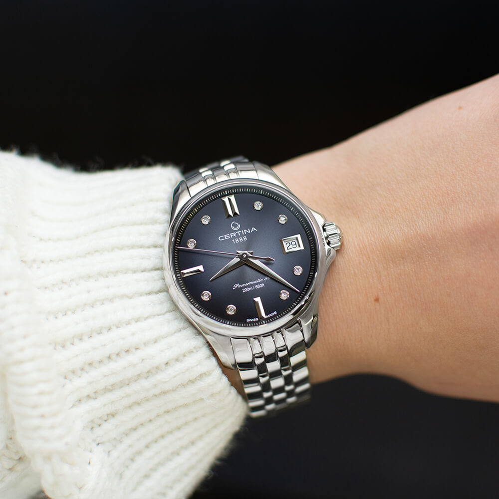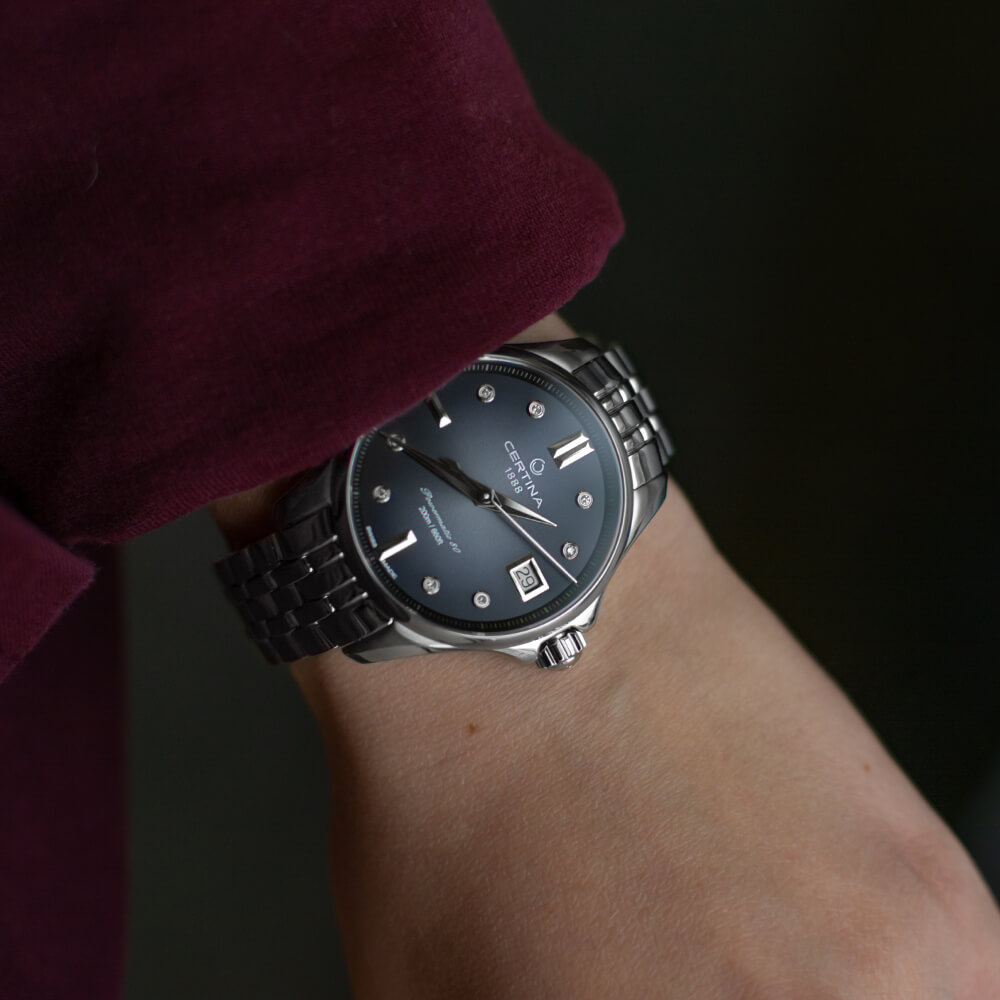 На циферблаті розташовано 8 діамантів - у комплекті з годинником йде спеціальний сертифікат, що підтверджує наявність та справжність діамантів.