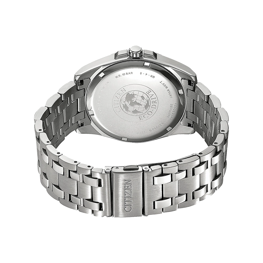 В годиннику встановлений механізм Eco-drive E111. Запас ходу складає 180 днів. Працює від будь-якого джерела світла, безперервно та стабільно, що усуває необхідність заміни батареї. Є індикатор запасу ходу. Є апертура дати.