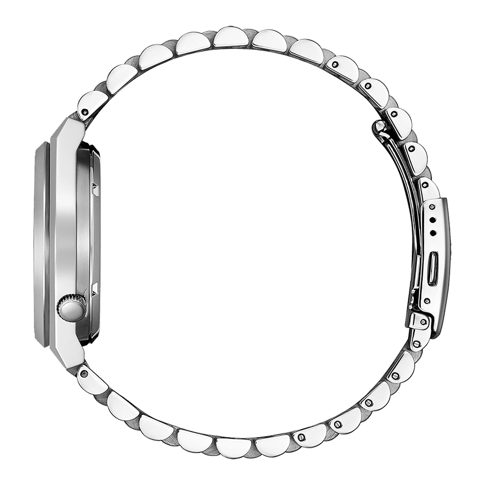 Браслет зроблений із нержавіючої сталі та має розкладну застібку.