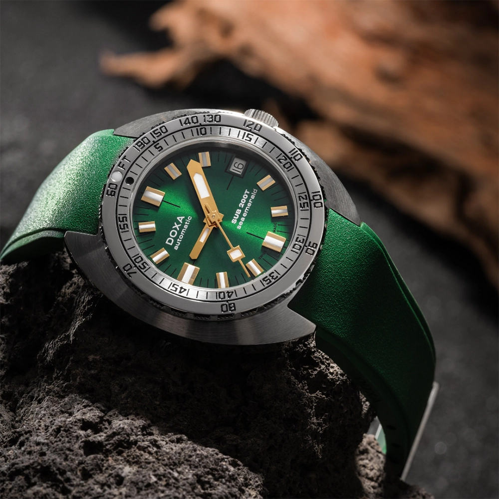 Новий DOXA SUB 200T зберігає оригінальну ДНК SUB, переробляючи просторові об’єми всередині корпусу, щоб зменшити годинник до більш сучасних габаритів. DOXA також змінила дизайн циферблата, щоб досягти більш сучасного візуального вигляду на зап’ясті.