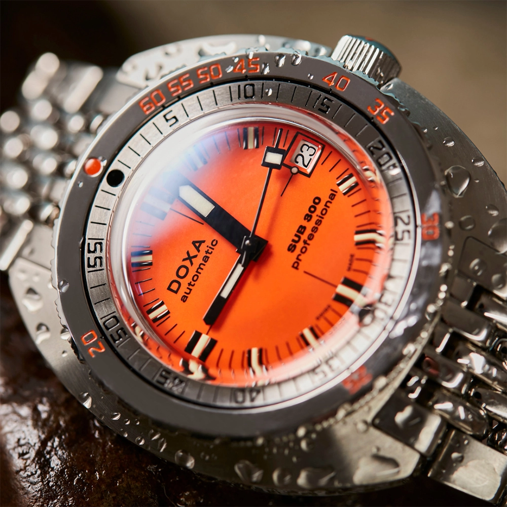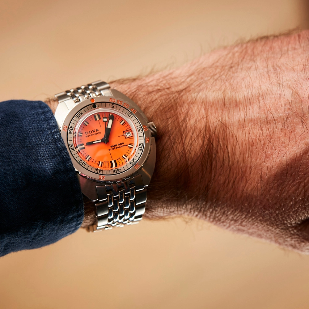 У 1967 році швейцарський бренд DOXA представив революційну концепцію годинника SUB, який вважається першим по-справжньому спеціалізованим дайверським годинником, доступним широкому загалу. Радикальні інновації, які мав годинник DOXA SUB, незабаром зробили його еталоном і для професіоналів. Водонепроникний до 30 бар, що приблизно відповідає глибині 300 метрів, він був першим годинником з односпрямованим безелем з подвійною шкалою глибини та часу занурення, що дозволяє розраховувати безпечне спливання без декомпресійних зупинок. Також DOXA першими вирішили використати помаранчевий циферблат, який значно покращив читання під водою.