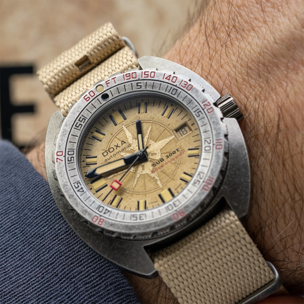 У молоді роки письменник Клайв Касслер працював у магазині дайвінгу. Після того, як перший роман був закінчений, він вирішив залишити роботу в магазині, присвятивши життя письменництву. Перед уходом менеджер магазину подарував йому Doxa SUB 300T з помаранчевим циферблатом. Далі ця модель опинилась на руці у героя його книжок - годинник навіть з'явився у фільмі «Сахара» на зап’ясті Меттью МакКонахі.