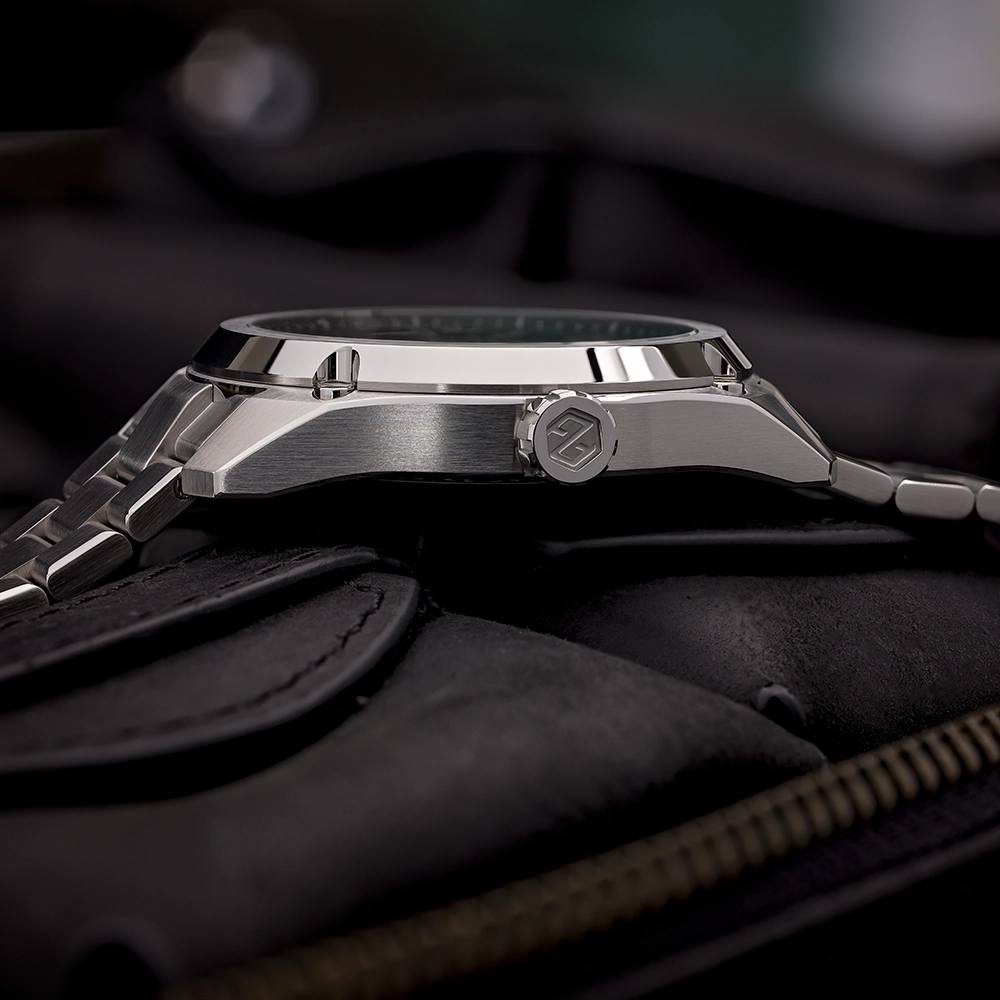 Горизонтальні лінії на циферблаті є однією з найбільш характерних рис годинника. Щоб досягти чітких ліній і гострих кутів, кожна лінія була окремо оброблена на циферблаті. Дата на 6 годині збігається за кольором, а обробка пензлем на нанесених покажчиках і стрілках округлена дзеркально полірованими фасками вручну. Ці поліровані фаски можна знайти по всьому годиннику; на корпусі, безелі, браслеті та пряжці. Стрілки та мітки мають люмінесцентне покриття Super-LumiNova BGW9.