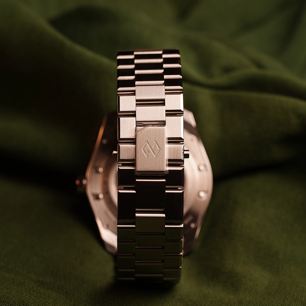 Сталевий браслет з гвинтами має застібку із запатентованою системою регулювання, а також повністю оновлену та запатентовану систему швидкого з’єднання, яка дозволяє міняти браслет на ремінець без використання будь-яких інструментів.