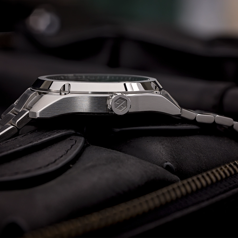 Горизонтальні лінії на циферблаті є однією з найбільш характерних рис годинника. Щоб досягти чітких ліній і гострих кутів, кожна лінія була окремо оброблена на циферблаті. Дата на 6 годині збігається за кольором, а обробка пензлем на нанесених покажчиках і стрілках округлена дзеркально полірованими фасками вручну. Ці поліровані фаски можна знайти по всьому годиннику; на корпусі, безелі, браслеті та пряжці. Стрілки та мітки мають люмінесцентне покриття Super-LumiNova BGW9.