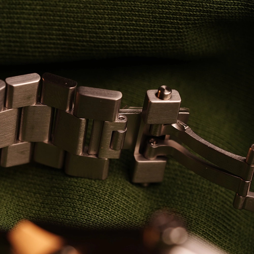 Сталевий браслет з гвинтами має застібку із запатентованою системою регулювання, а також повністю оновлену та запатентовану систему швидкого з’єднання, яка дозволяє міняти браслет на ремінець без використання будь-яких інструментів.
