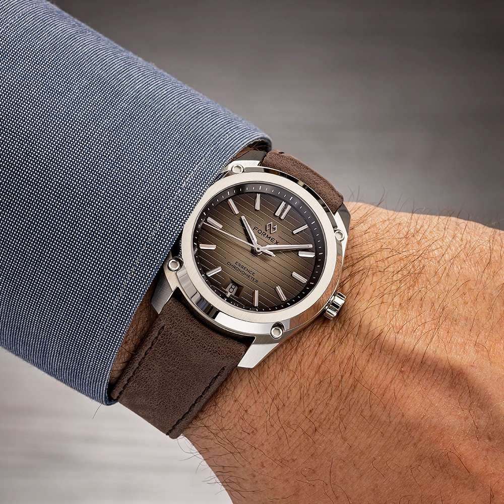 FORMEX ESSENCE AUTOMATIC COSC "DEGRADE" 39MM 0333.1.6624.722 - це годинник з колекції ESSENCE, оснащений сертифікованим COSC механічним калібром Sellita. Особливість моделі - її циферблат.