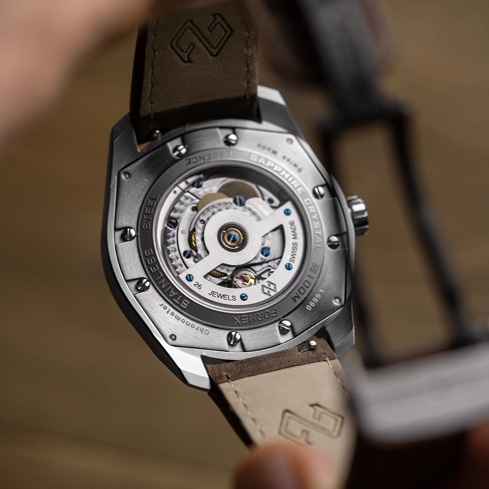 В годиннику встановлений механічний калібр Sellita SW200-1 з автопідзаводом, що має сертифікацію хронометра COSC. Кількість каменів - 26. Частота напівколивань - 28800 на годину. Запас ходу 41 година. Механізм декорований Formex і має скелетонізований ротор.