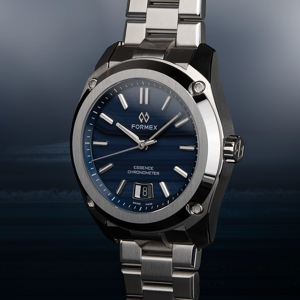 FORMEX ESSENCE AUTOMATIC COSC "BLUE AGATE" 39MM 0333.1.6639.100 - це годинник з колекції ESSENCE, оснащений сертифікованим COSC механічним калібром Sellita. Особливість моделі - її циферблат.