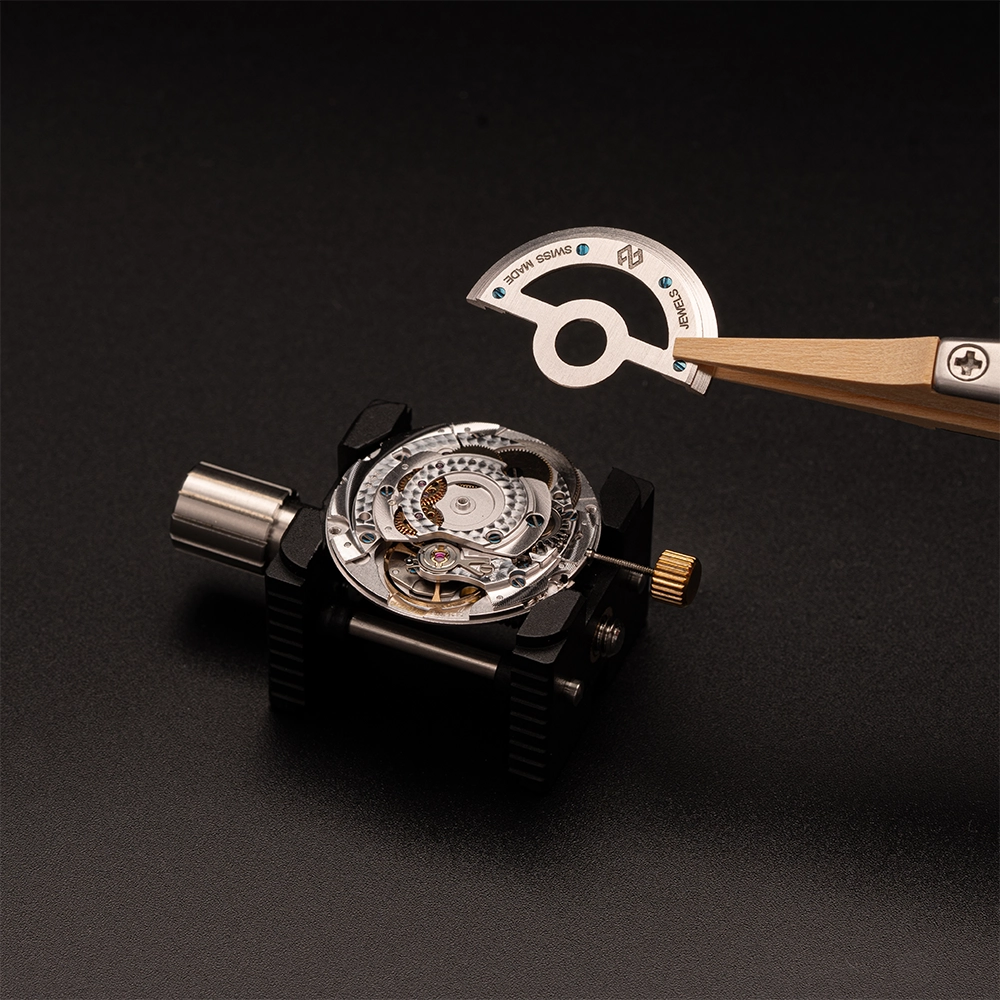 В годиннику встановлений механічний калібр Sellita SW200-1 з автопідзаводом, що має сертифікацію хронометра COSC. Кількість каменів - 26. Частота напівколивань - 28800 на годину. Запас ходу 41 година. Механізм декорований Formex і має скелетонізований ротор.