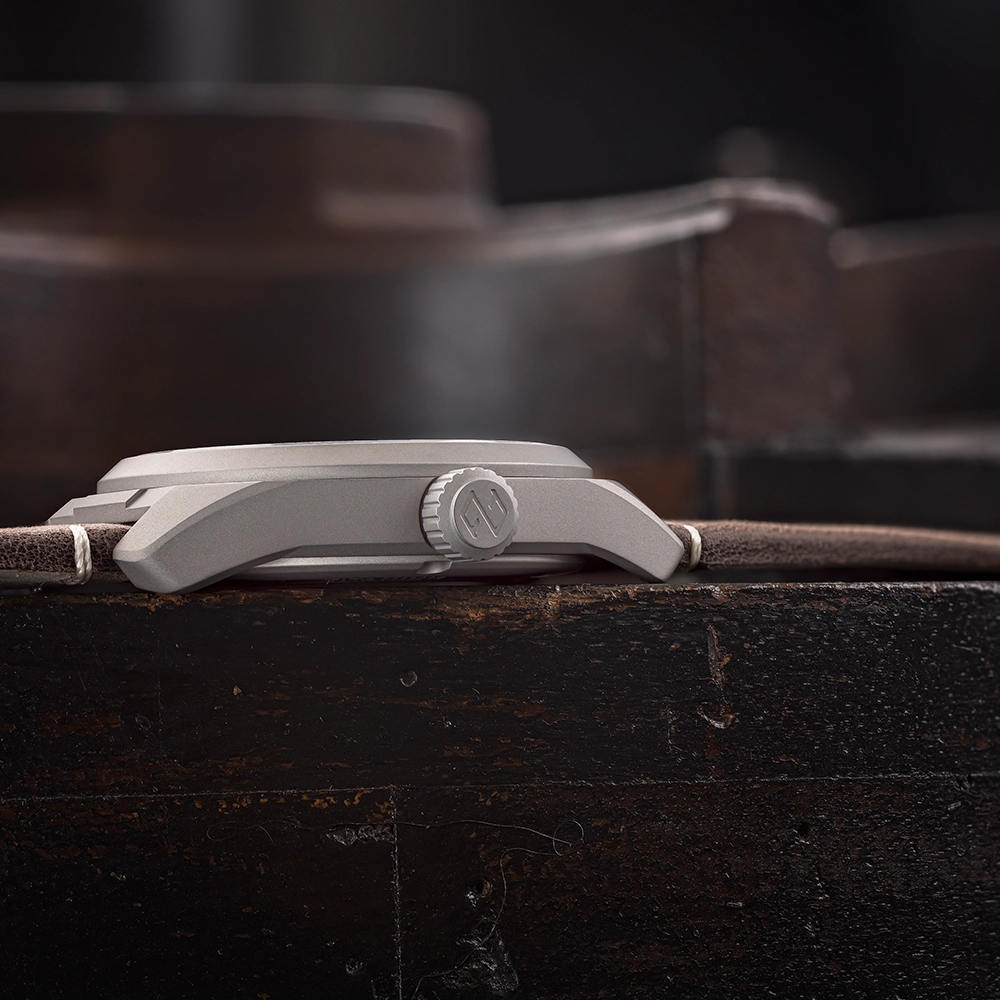 Годинник зроблено з титану Grade 2. Спеціальна зміцнююча обробка підвищує твердість поверхні від 145 до приблизно 900 за Віккерсом, зберігаючи легкість, комфорт і гіпоалергенні властивості титану.