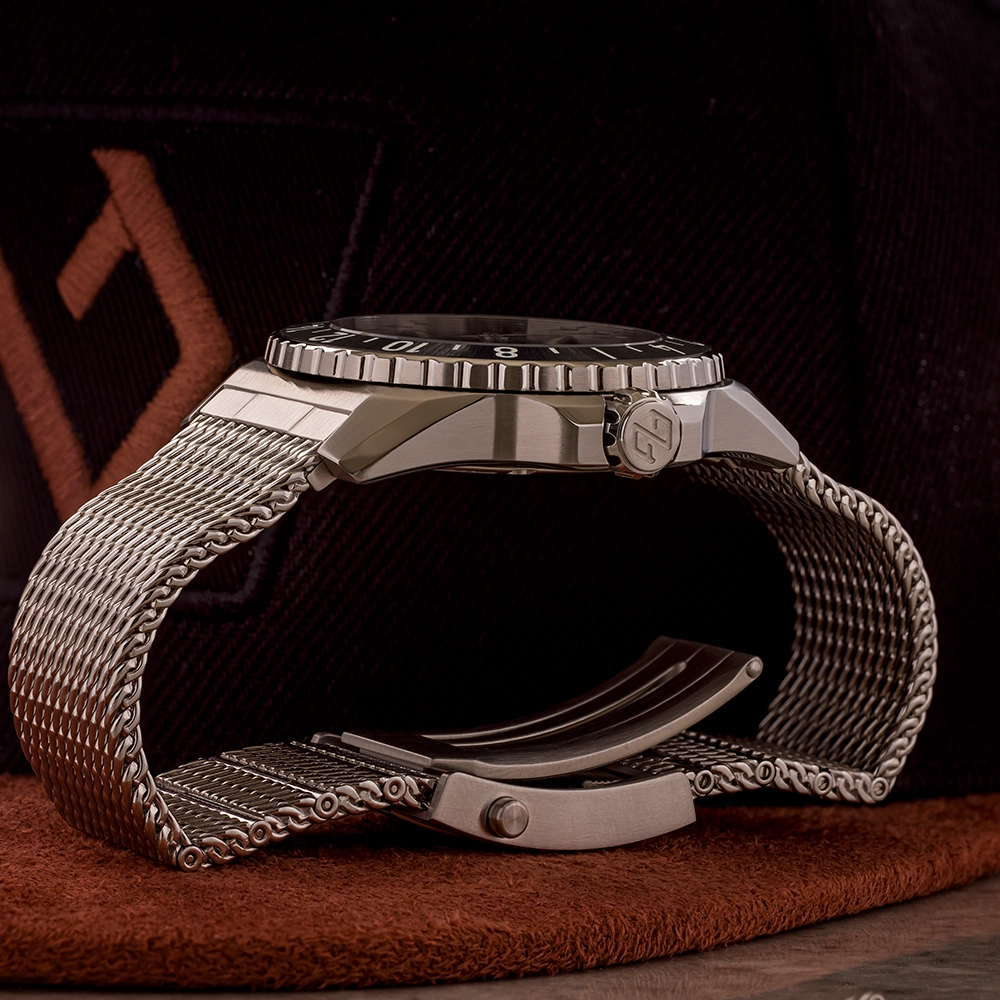 Сталевий браслет міланського плетіння має застібку із запатентованою системою регулювання, а також повністю оновлену та запатентовану систему швидкого з’єднання, яка дозволяє міняти браслет на ремінець без використання будь-яких інструментів.