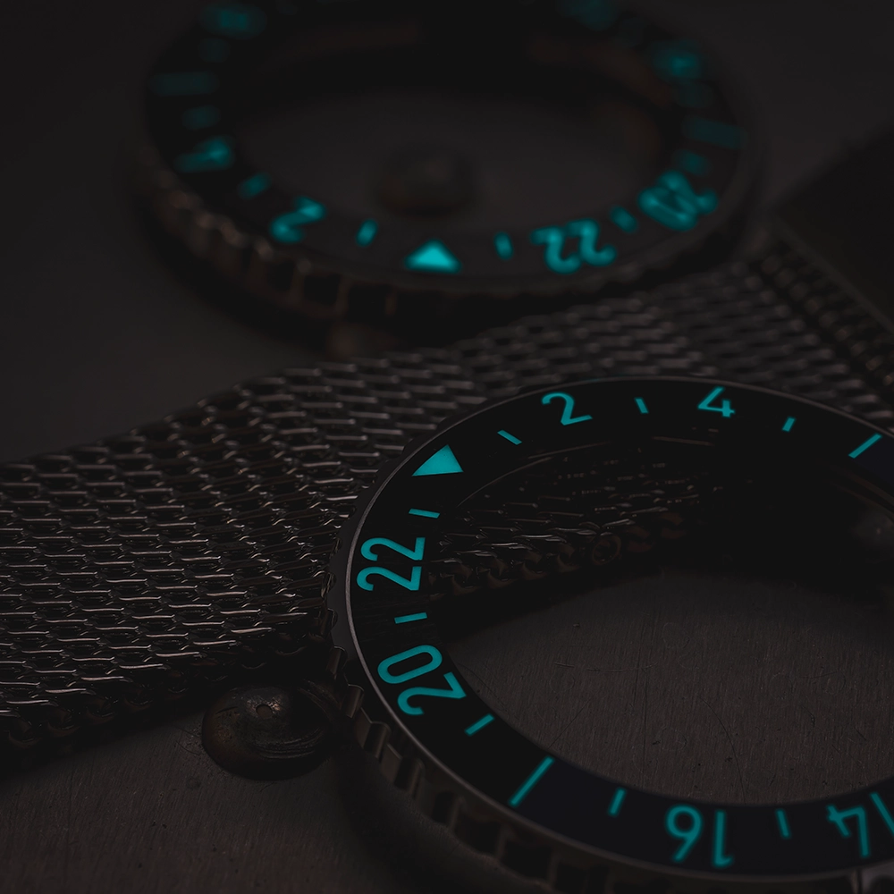 Безель, що обертається в обох напрямках, виготовлений зі сталі та надзвичайно твердої та стійкої до подряпин кераміки з оксиду цирконію. Безель оснащений запатентованою системою зміни без інструментів, яка вперше була представлена на дайвері REEF, і всі безелі є взаємозамінними між двома моделями. Оскільки сам безель має 24-годинну шкалу, тепер він має 48 клацань.