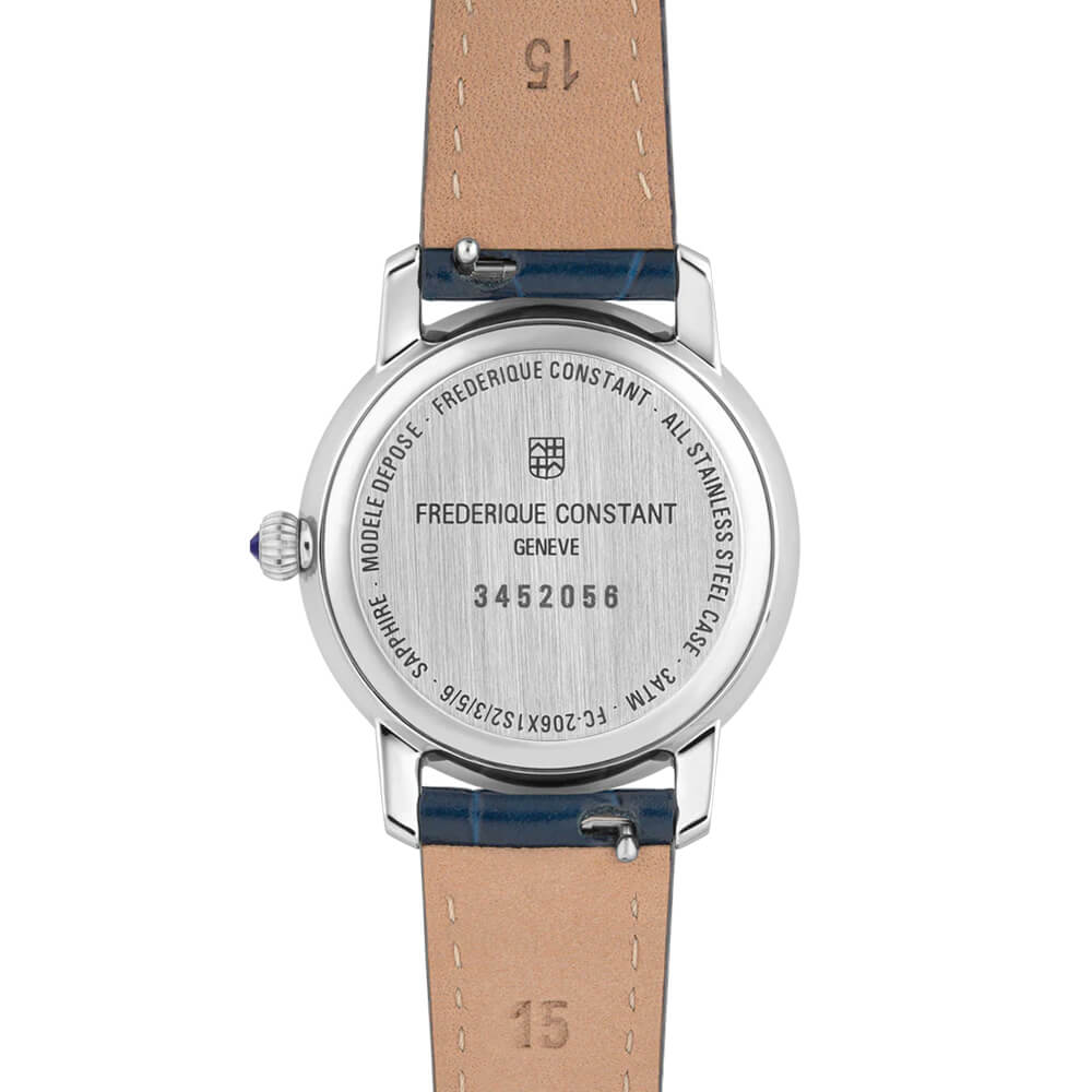 Механізм: кварцовий калібр FC-206. Термін служби – 5 років.