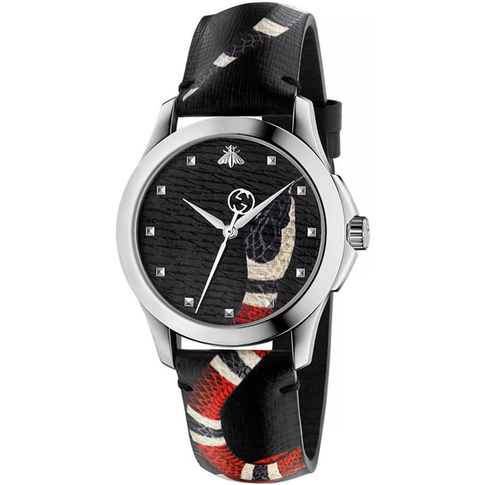 Корпус годинника виконаний із гіпоалергенної сталі 316L. Ремінець із натуральної шкіри з малюнком змії.