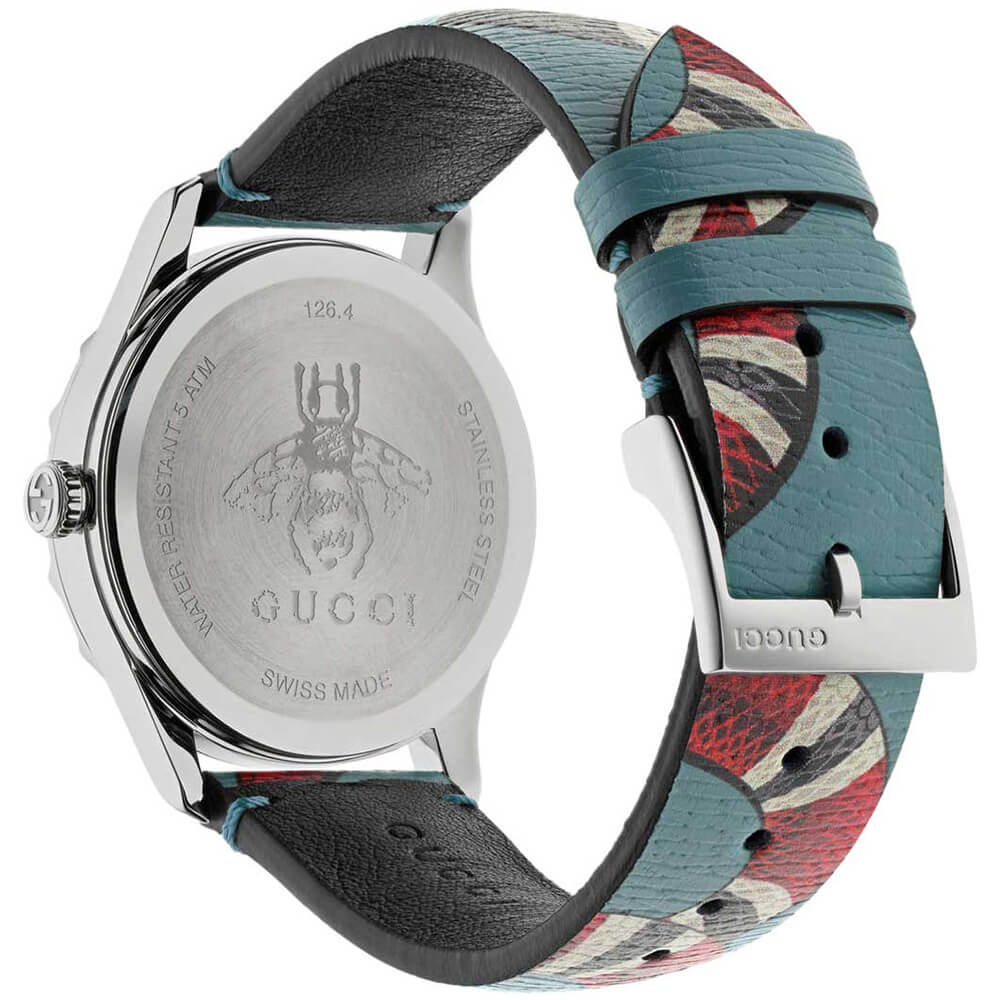 Корпус годинника виконаний із гіпоалергенної сталі 316L. Ремінець із натуральної шкіри з малюнком змії.