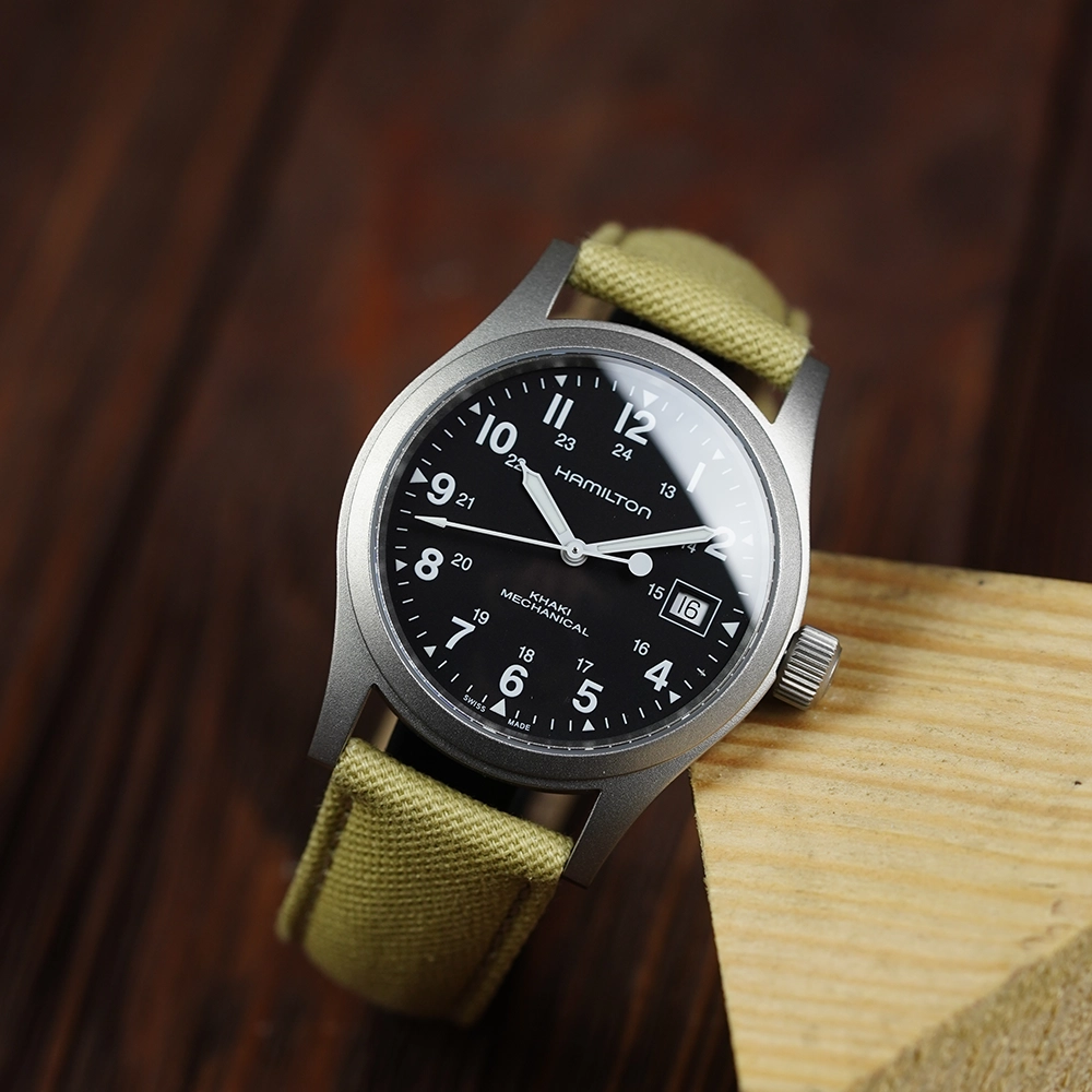Модель Khaki Field Mechanical 38mm H69439933 є даниною поваги до військової спадщини бренду і є ідеальним поєднанням вінтажної моделі з сучасними технологіями. Цей годинник створений на основі оригінальних військових годинників того часу, з ручним заводом і привабливим ремінцем нато — цей годинник міцний, але легкий і дуже зручний.