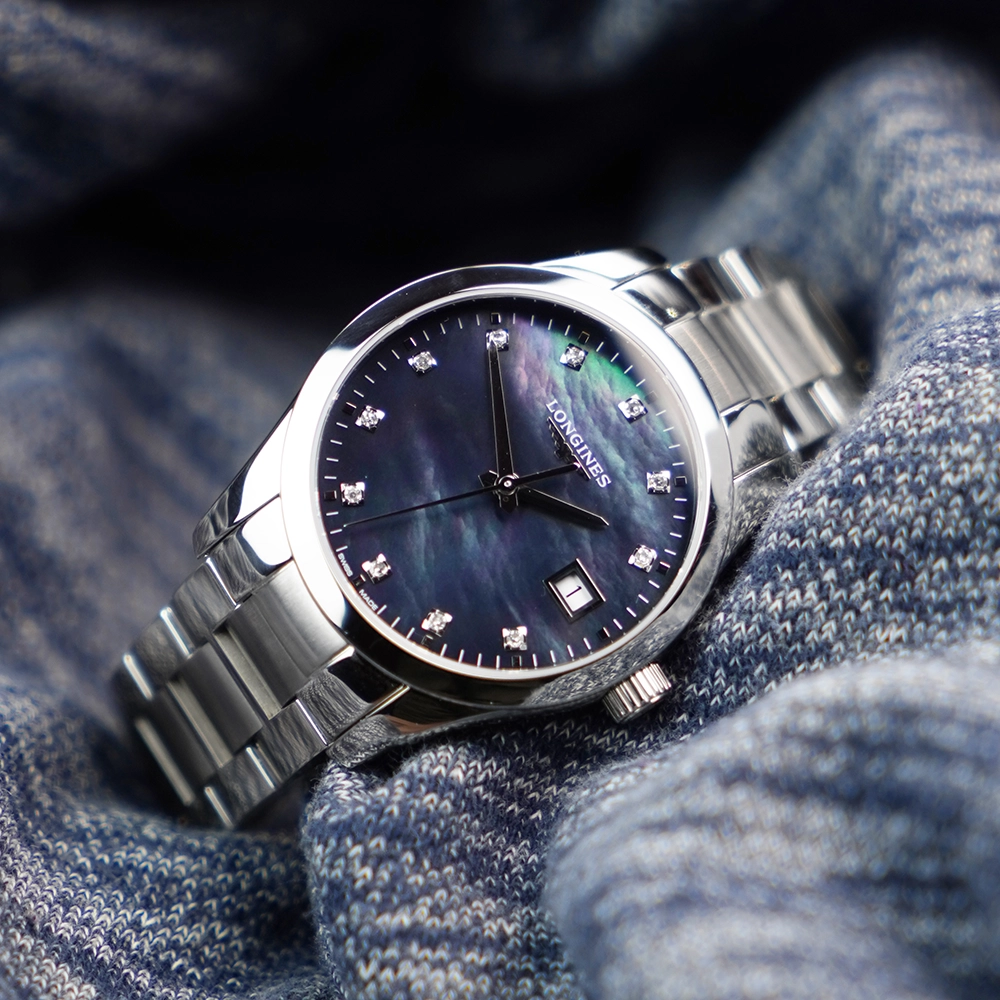 Є індикатор дати. Циферблат із натурального перламутру інкрустований 11 діамантами Top Wesselton VS-SI вагою 0,055 карат.