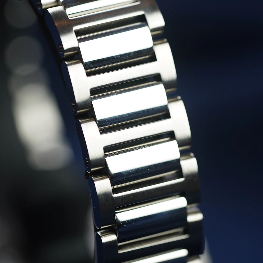 Браслет зроблений з нержавіючої сталі. Розкладна потрійна застібка з системою блокування та кнопкою.