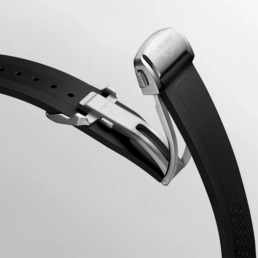 Каучуковий ремінець з подвійною розкладною застібкою з системою блокування та кнопкою.