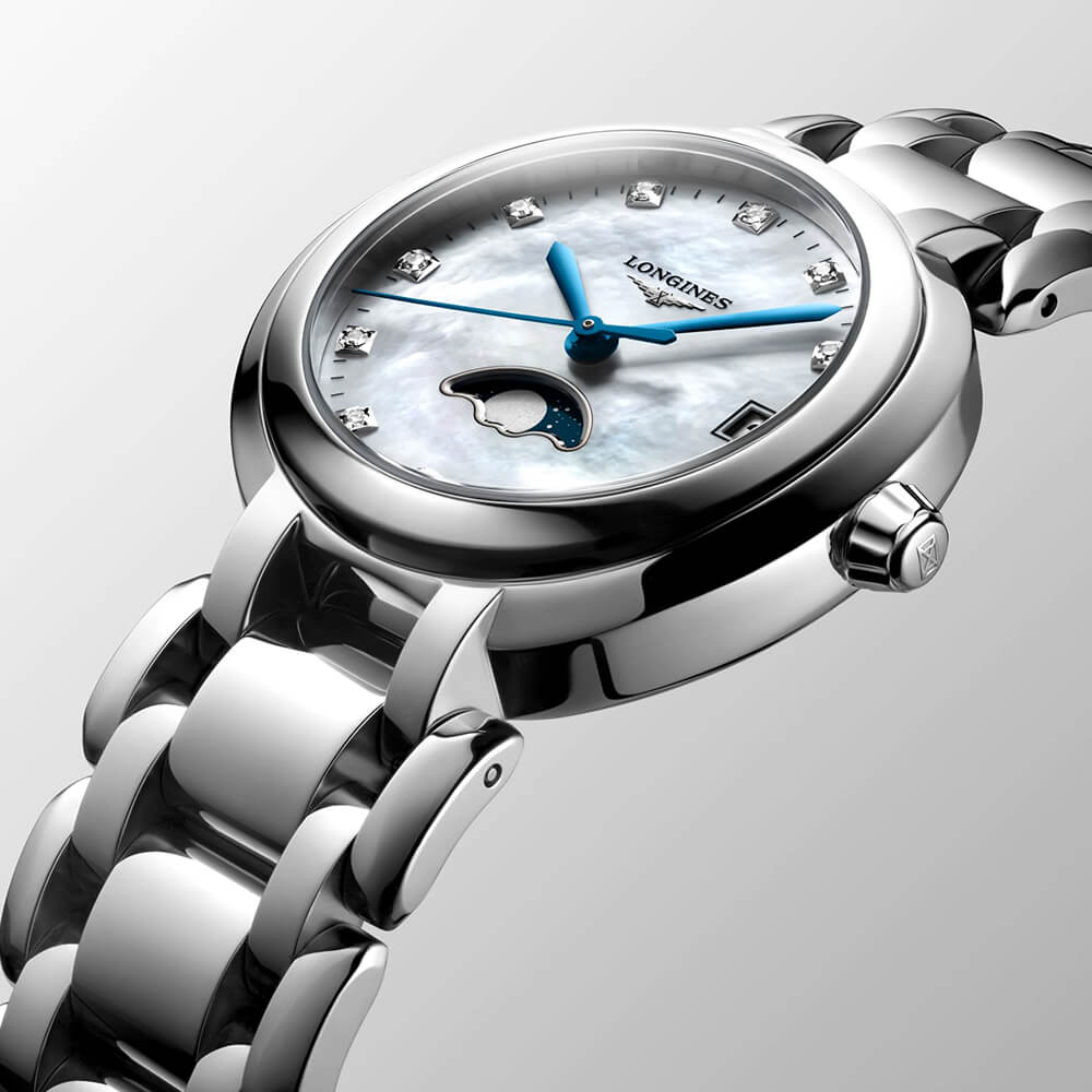 Корпус і браслет годинника виконаний із гіпоалергенної сталі 316L. Браслет із застібкою, що розкладається. Ширина браслета 7 мм. Циферблат із натурального перламутру інкрустований 11 діамантами Top Wesselton VS-SI вагою 0,044 карат.