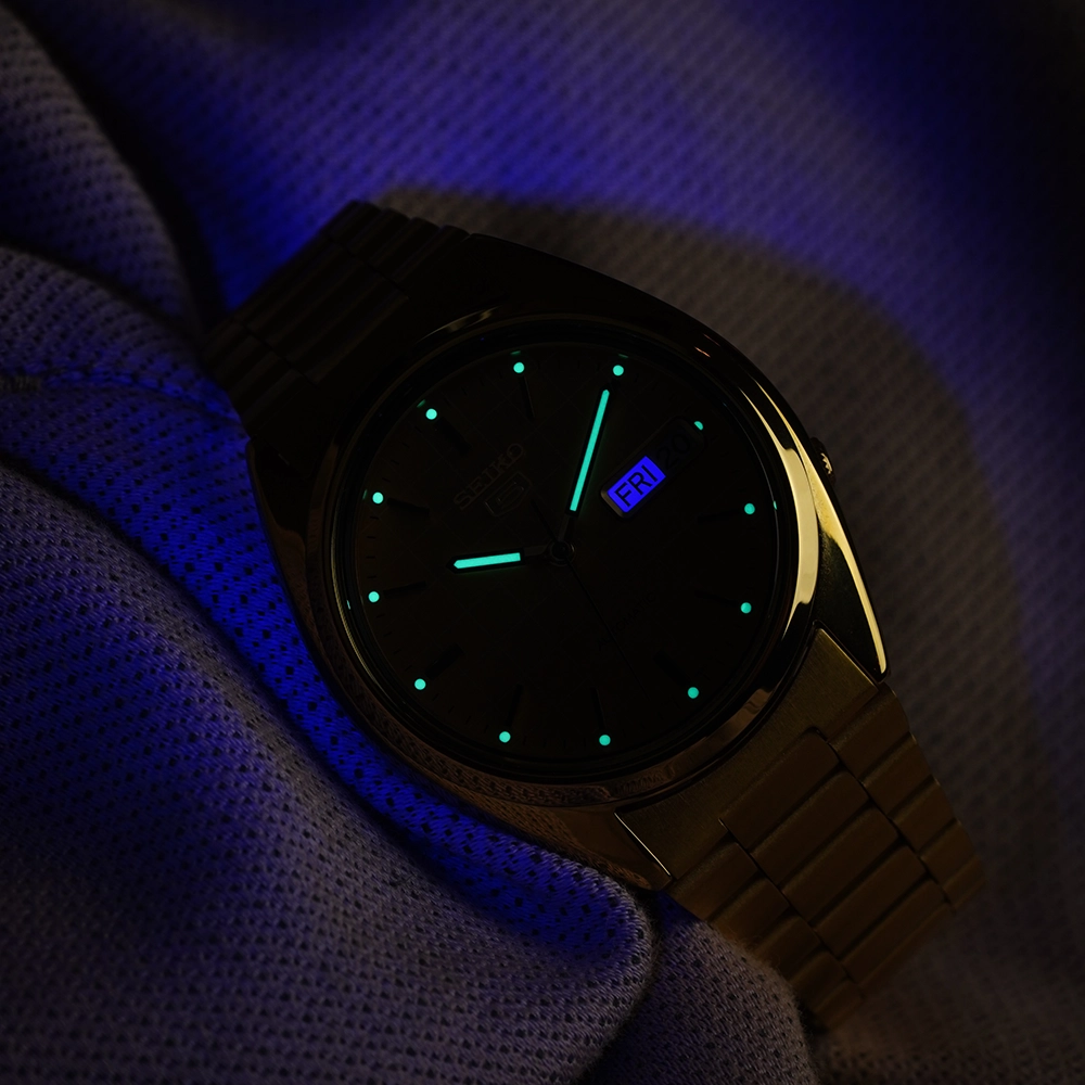Люмінесцентний склад LumiBrite на стрілках та мітках дозволяє легко зчитувати час у будь-який час доби.