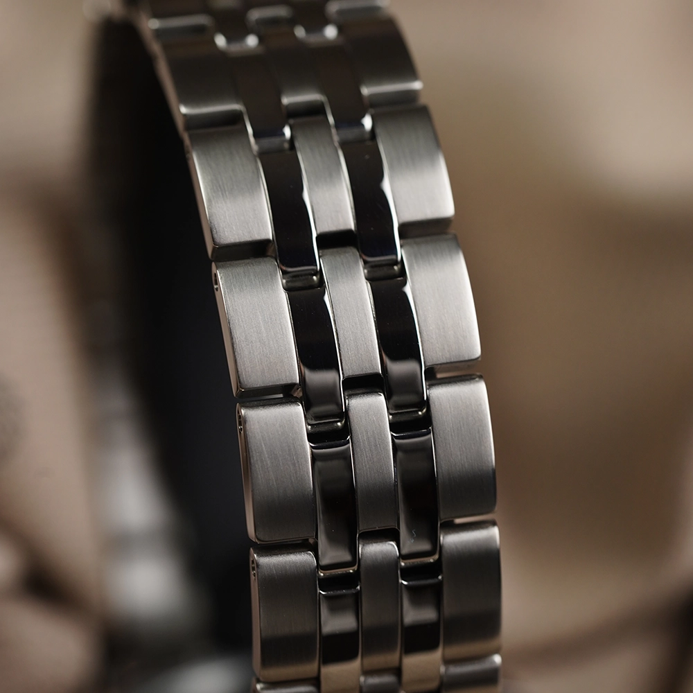 Матеріал корпусу та браслета - нержавіюча сталь 316L. Застібка браслета, що розкладається, із системою блокування. Циферблат захищає скло хардлекс. Є індикатор дати. Задня кришка загвинчується і прозора - крізь неї видно механізм.