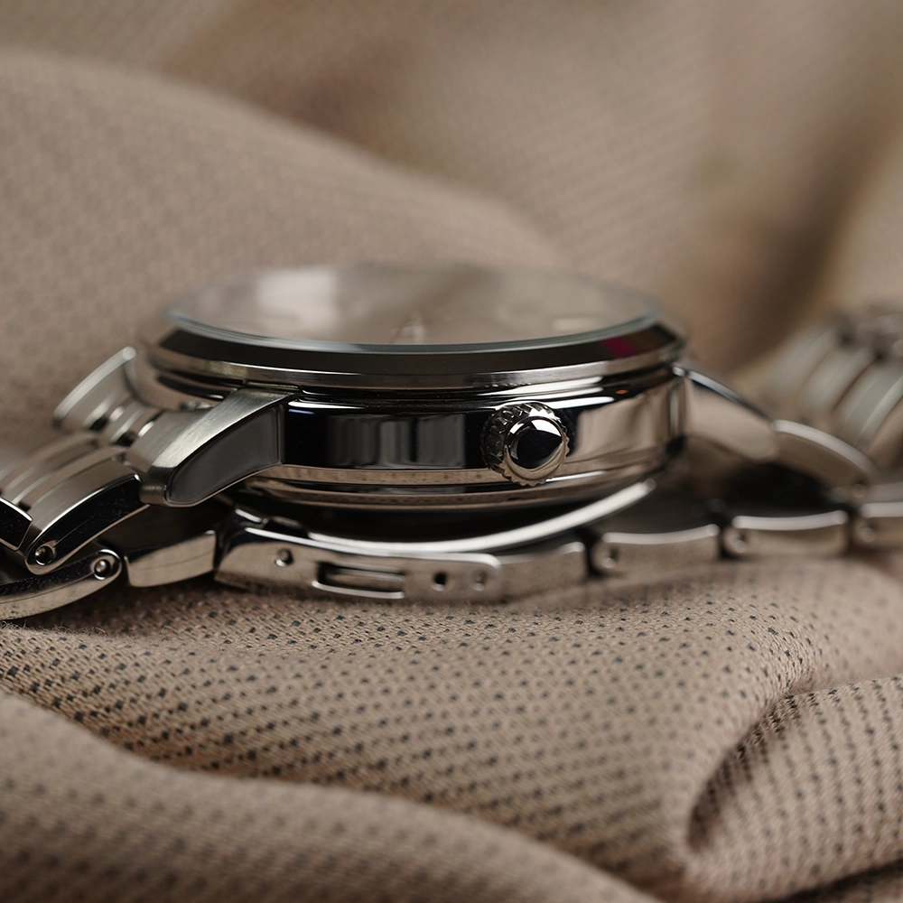 Матеріал корпусу та браслета - нержавіюча сталь 316L. Застібка браслета, що розкладається, із системою блокування. Циферблат захищає скло хардлекс. Є індикатор дати. Задня кришка загвинчується і прозора - крізь неї видно механізм.