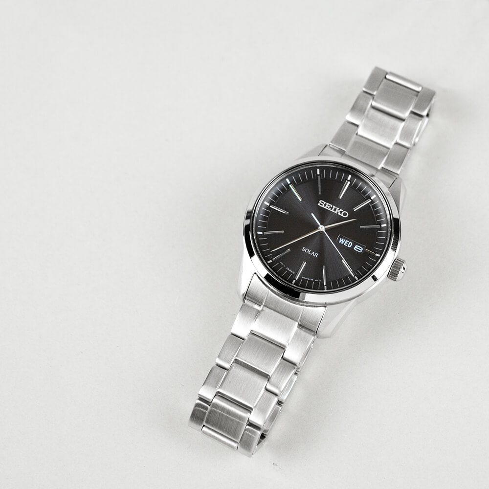 Кварцовий механізм на сонячній батареї; індикація часу, дата і день тижня, попередження про виснаження енергії та запобігання перезарядженню
