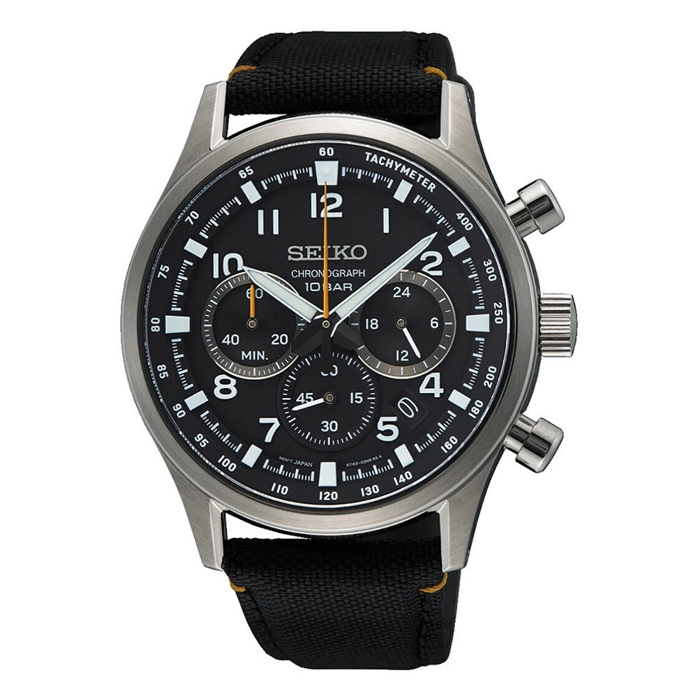 В годиннику встановлений кварцовий механізм 8T63. Є хронограф, тахіметрична шкала та апертура дати.