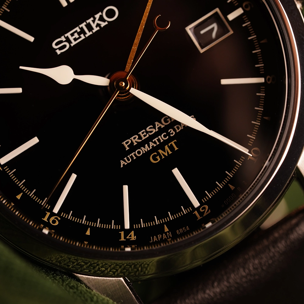 В годиннику встановлений механічний калібр 6R54 з автопідзаводом. Кількість каменів - 24. Частота напівколивань - 21600 на годину. Запас ходу 72 годин. Є функція GMT та апертура дати.