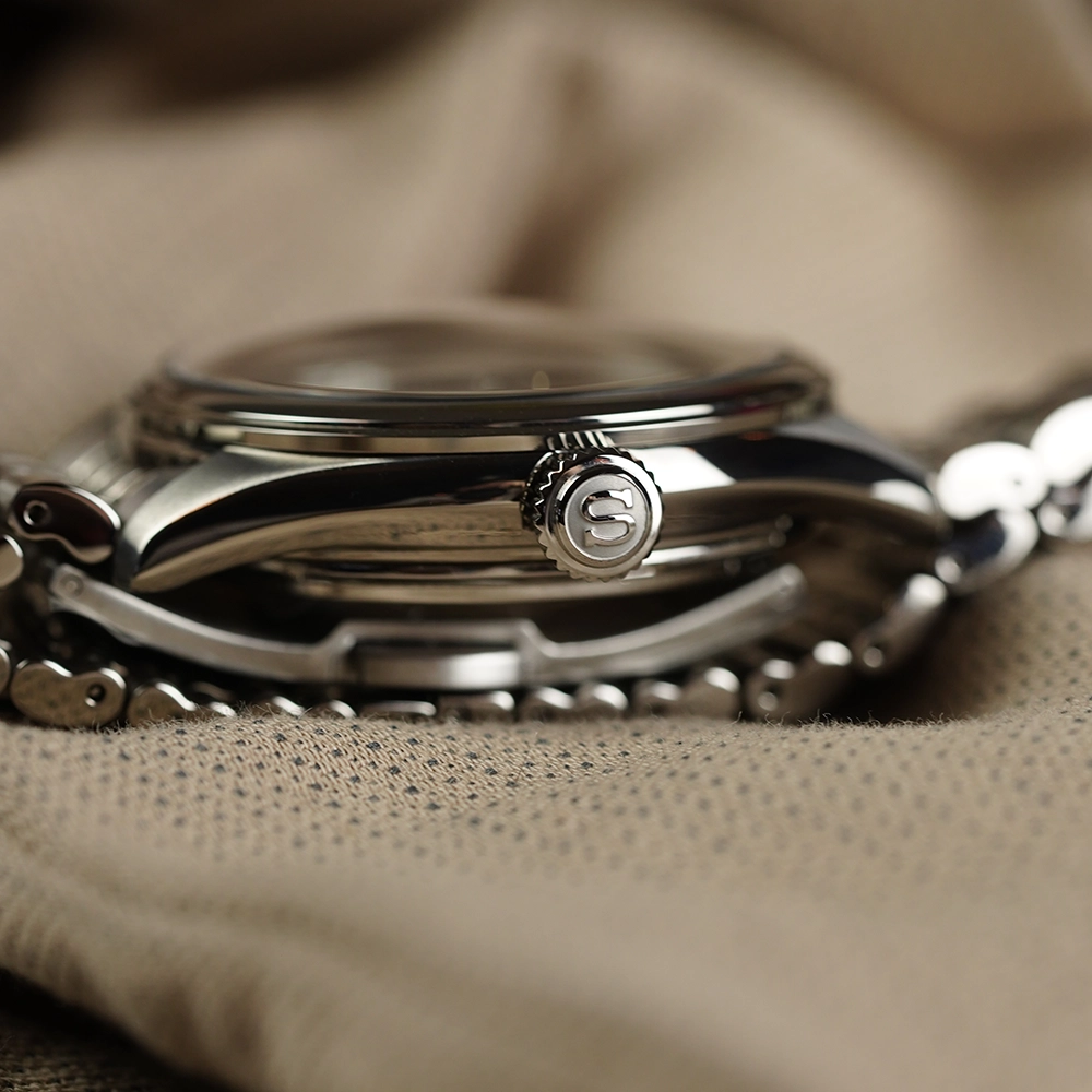 Матеріал корпуса та браслета – нержавіюча сталь 316L. Циферблат захищає куполоподібне сапфірове скло з покриттям антивідблиску. На циферблаті є апертура дати. Задня кришка загвинчується і прозора - крізь неї видно механізм.