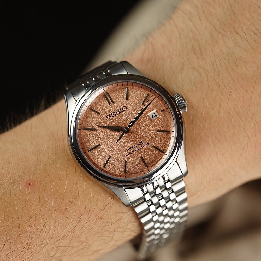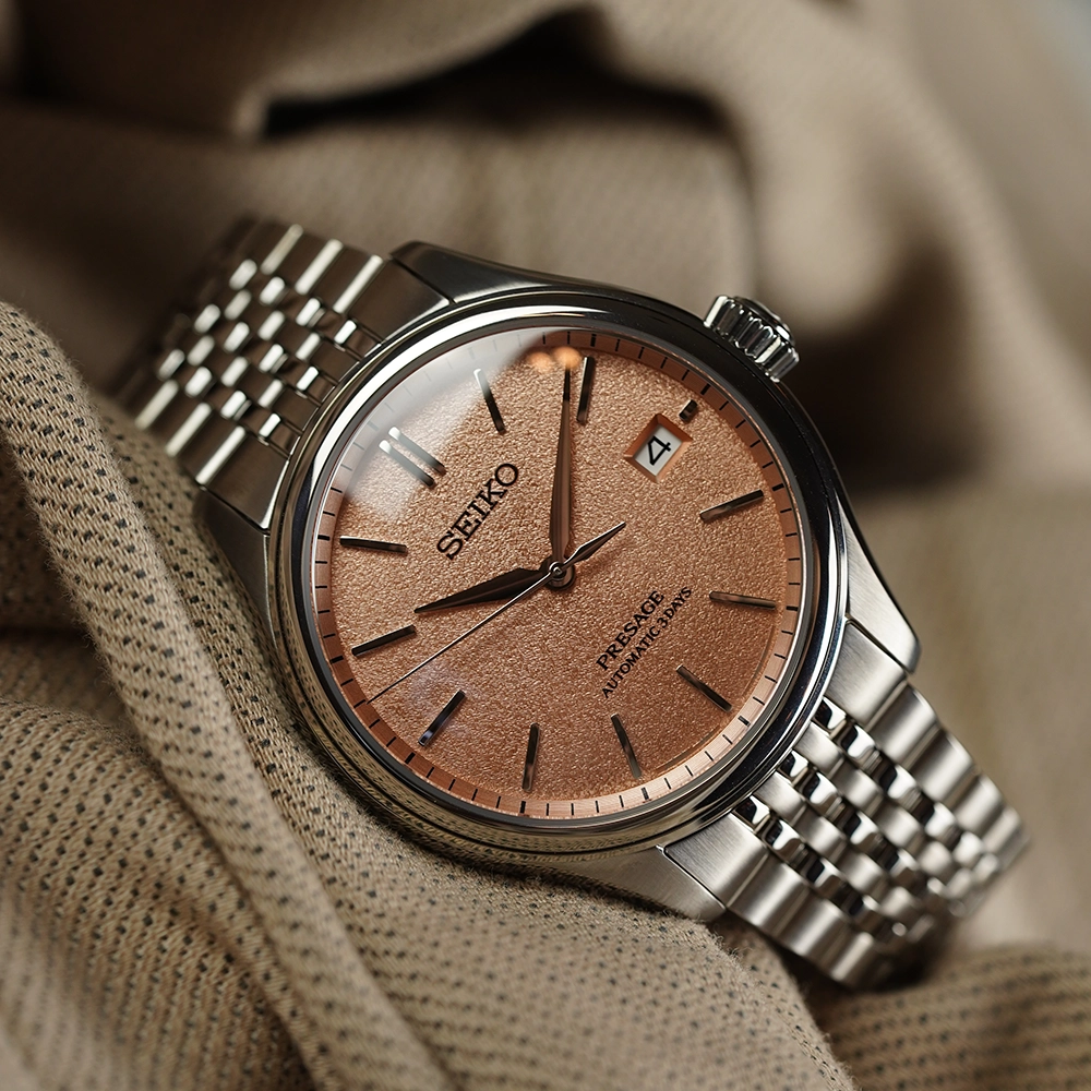 Годинник Seiko Presage SPB467J1 належить до нової серії Classic. Вигнутий циферблат демонструє складний фактурний візерунок, натхненний традиційними японськими шовковими тканинами. SPB467J1 представляє колір араігакі, вибілений колір хурми. Годинна та секундна стрілки витончено згинаються до маркерів, створюючи гармонійний візуальний баланс. В серії також цікавий багаторядний браслет у стилі 1970-х років з короткими ланками.