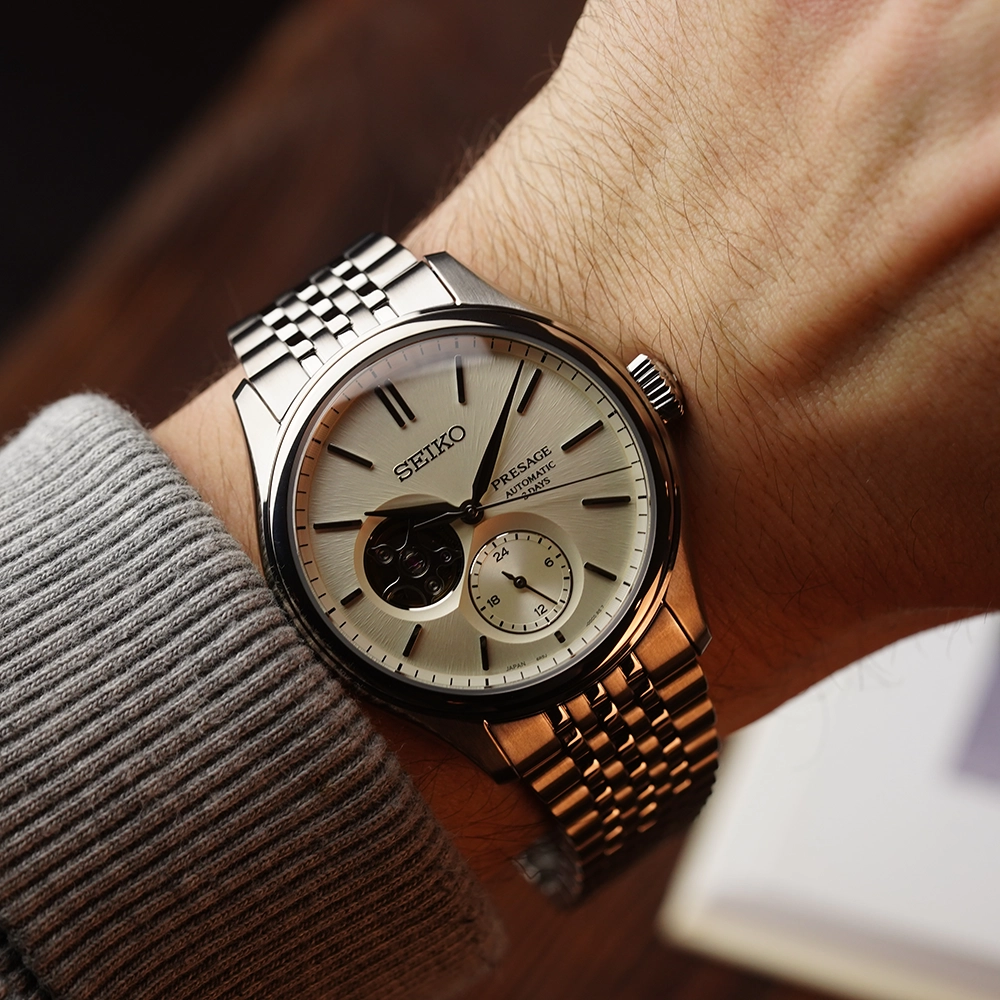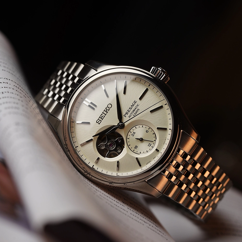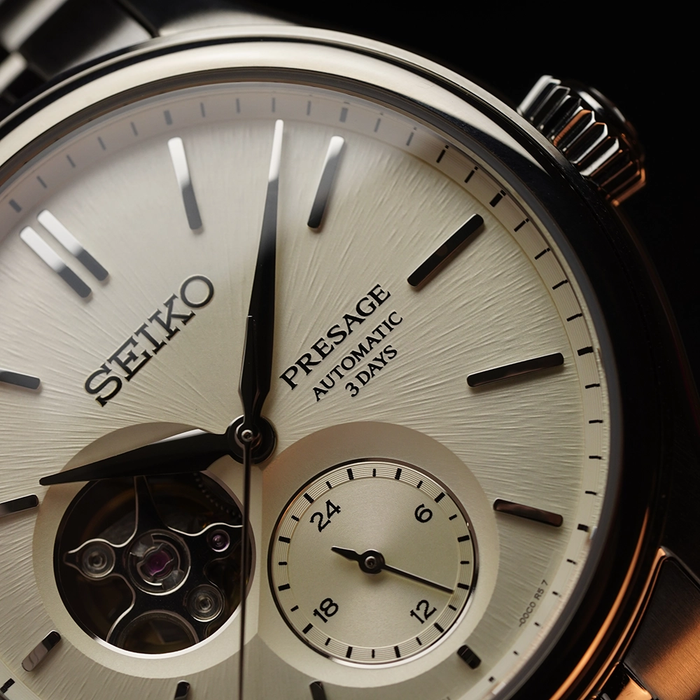 Чоловічий годинник Seiko Presage Classics SPB469J1 входить до колекції Presage. Циферблат має відтінок “sumi-iro”, цей доволі незвичний сірувато-чорний колір історично асоціюється з одягом, який носили монахи. Також циферблат має обробку з радіальним візерунком, що імітує текстуру шовкової нитки.