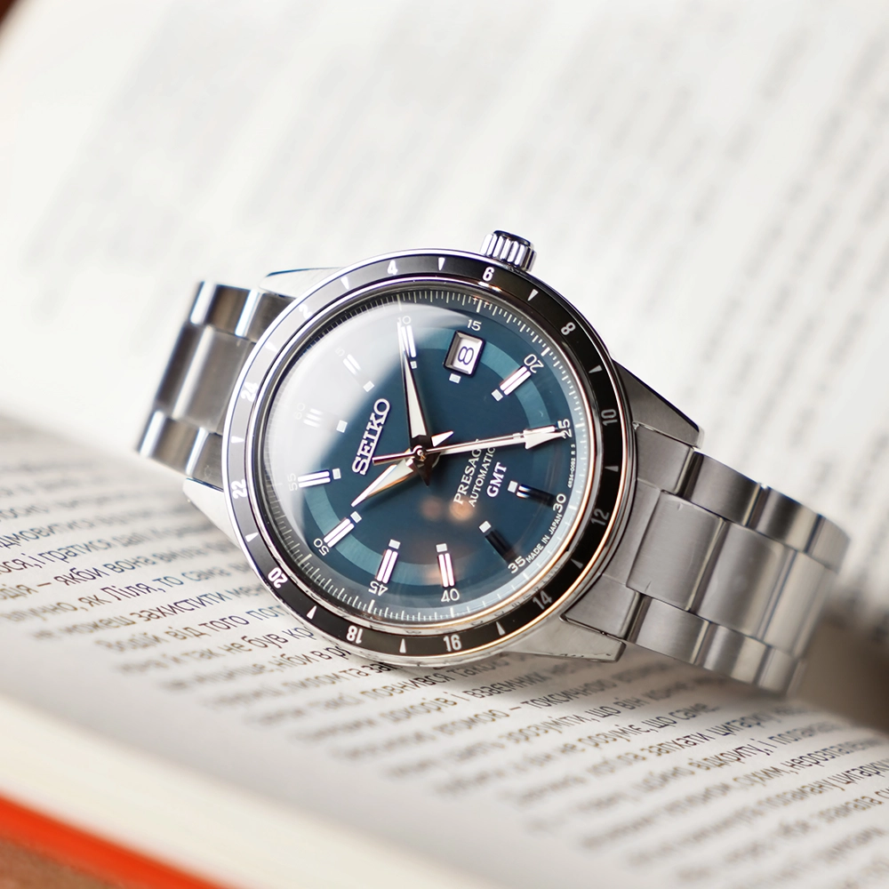 Матеріал корпусу та браслет - нержавіюча сталь 316L. На стрілках люмінесцентне покриття Seiko LumiBrite. Браслет із застібкою, що розкладається. Ширина браслета 20 мм. Циферблат захищає скло хардлекс. Є індикатор дати, функція GMT. Задня прозора кришка.