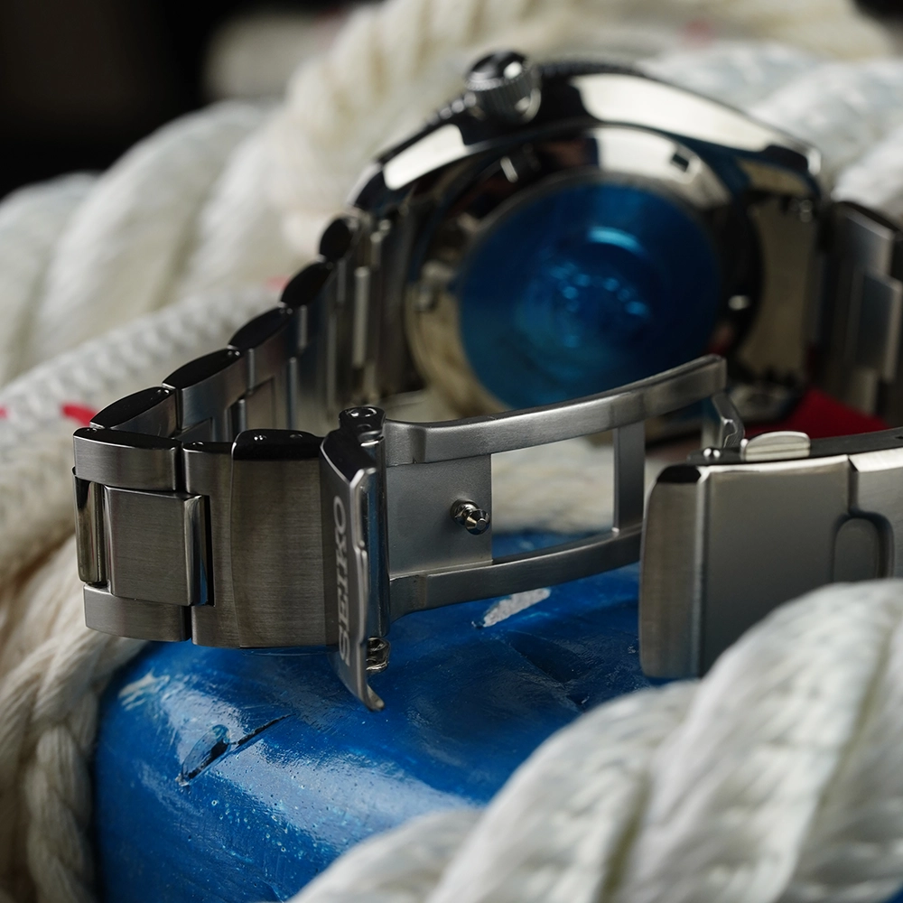 Матеріал корпусу та браслета - нержавіюча сталь 316L. Корпус має полірування Zaratsu. На стрілки та мітки нанесено підсвітку LumiBrite – власний запатентований склад Seiko. За 10 хвилин поглинає світло, достатнє для світіння стрілок на 3-5 годин. Циферблат захищає сапфірове скло з покриттям антивідблиску. Є індикатор дати. Задня кришка і заводна головка загвинчуються.