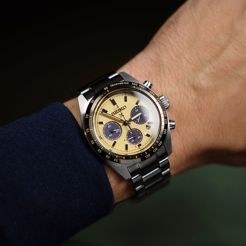 Матеріал корпусу та браслета - нержавіюча сталь 316L. Браслет має литу застібку, що розкладається. На стрілки та мітки нанесено підсвічування LumiBrite - власний запатентований склад Seiko. За 10 хвилин поглинає світло, достатнє для свічення стрілок на 3-5 годин. Циферблат захищає сапфірове скло з антивідблисковим покриттям. Є індикатор дати та тахіметрична шкала.