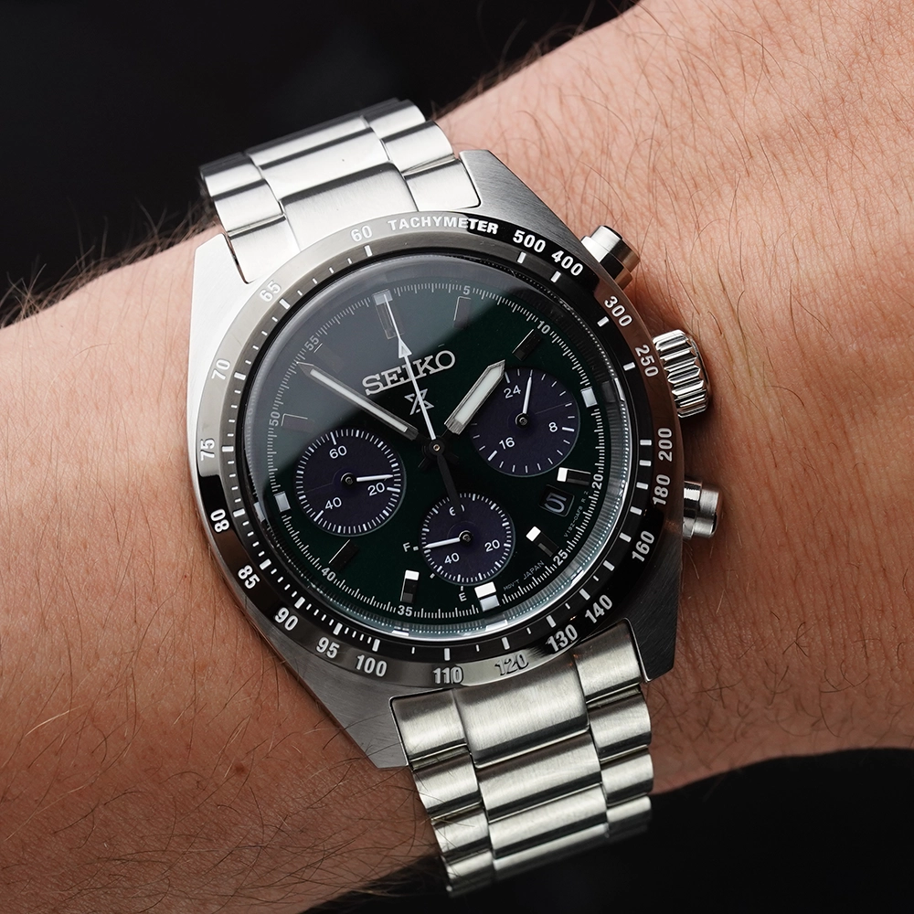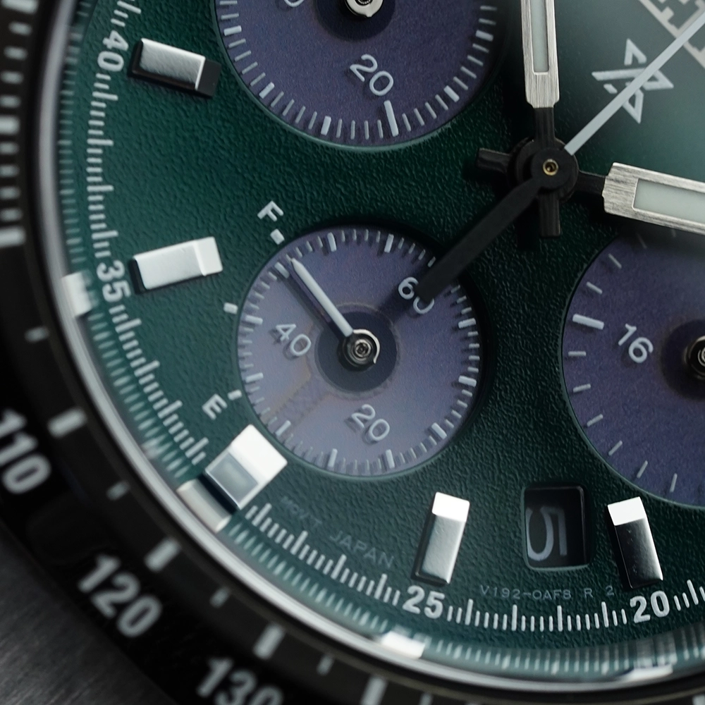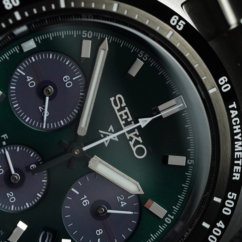 Матеріал корпусу та браслета - нержавіюча сталь 316L. Браслет має литу застібку, що розкладається. На стрілки та мітки нанесено підсвічування LumiBrite – власний запатентований склад Seiko. За 10 хвилин поглинає світло, достатнє для свічення стрілок на 3-5 годин. Циферблат захищає сапфірове скло з антивідблисковим покриттям. Є індикатор дати та тахіметрична шкала.