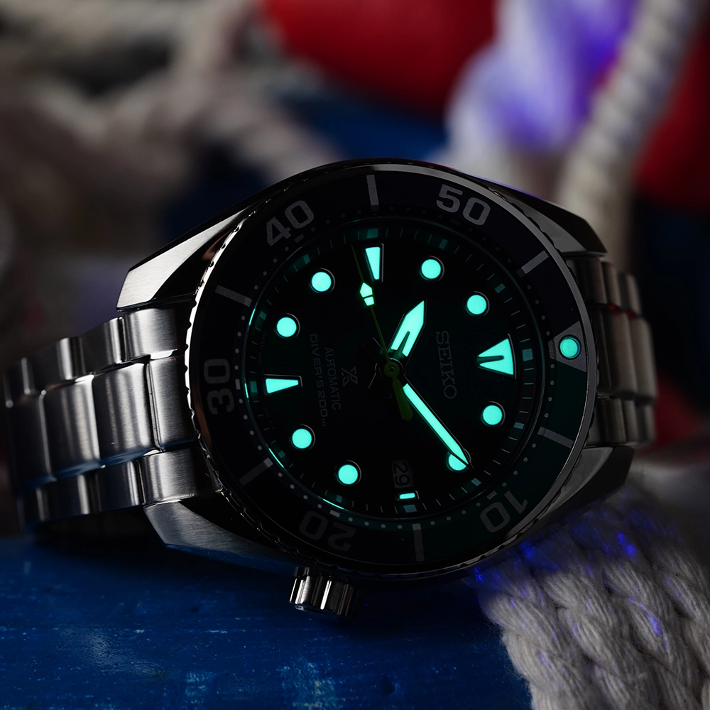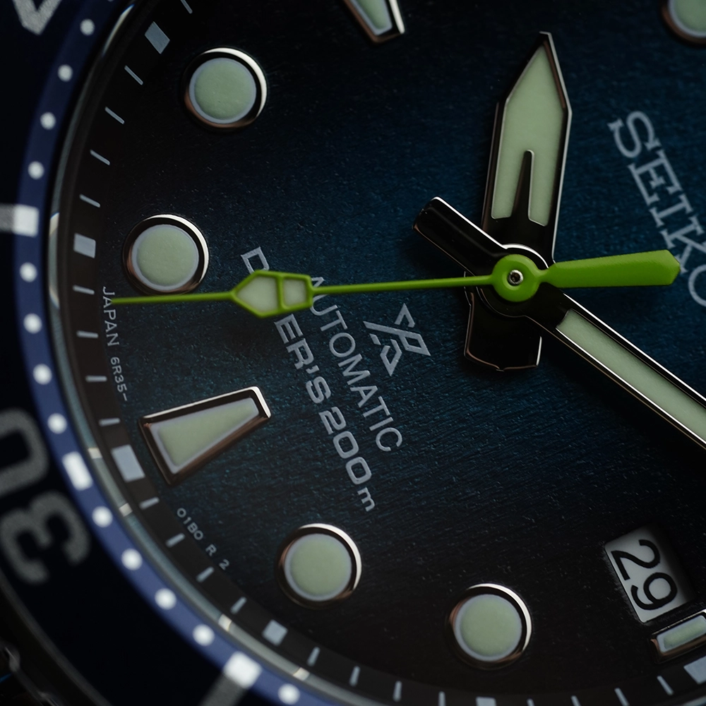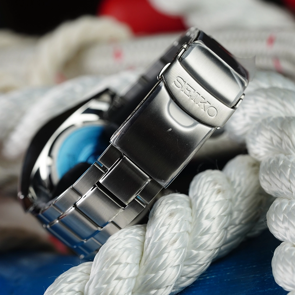 Матеріал корпусу та браслета - нержавіюча сталь 316L. Браслет із спеціальною системою, яка дозволяє збільшити розмір браслета для носіння годинника на гідрокостюмі. На стрілки та мітки нанесено підсвічування LumiBrite – власний запатентований склад Seiko. За 10 хвилин поглинає світло, достатнє для світіння стрілок на 3-5 годин. Циферблат захищає сапфірове скло з антивідблисковим покриттям. Є індикатор дати. Задня кришка і заводна головка загвинчуються.