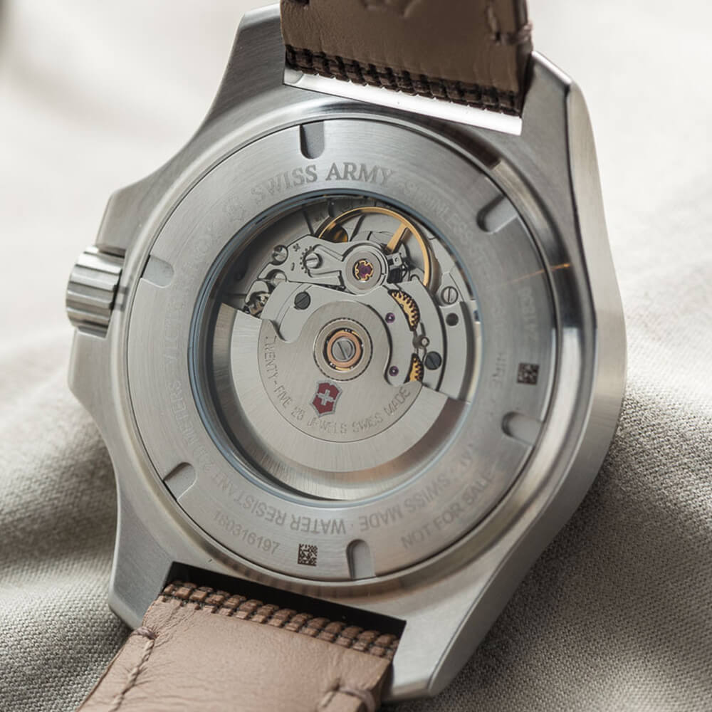 В годиннику встановлений механічний калібр Sellita SW 200-1 з автопідзаводом. Кількість каменів - 26. Частота напівколивань - 28800 на годину. Запас ходу 38 годин. Є дата.