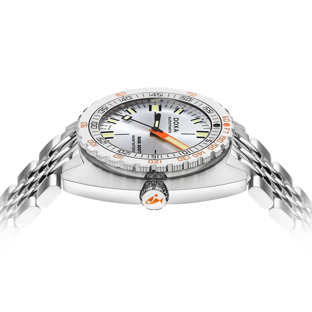 SUB 300T оснащений знаменитим однонаправленим безелем, що обертається, запатентованим DOXA, з подвійною індикацією часу занурення в хвилинах і глибини в метрах для розрахунку часу занурення з безупинною декомпресією. Водонепроникність годинника з заводною головкою, що загвинчується становить 1200 метрів. У годиннику є гелієвий клапан.