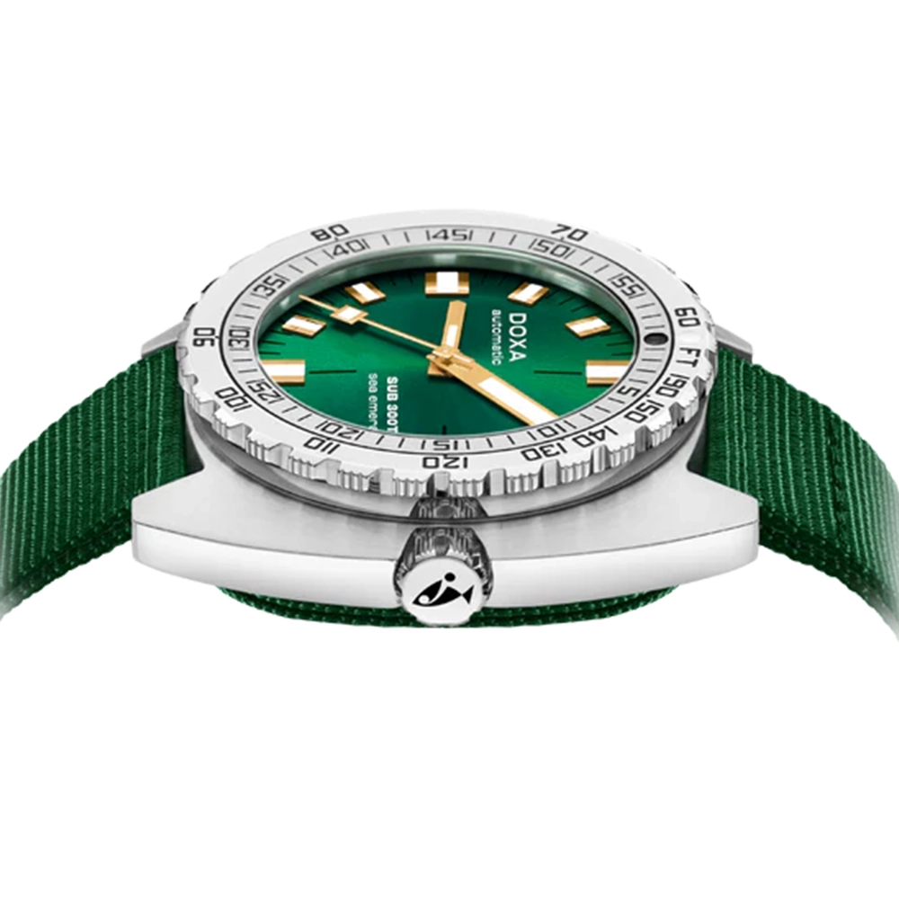 SUB 300T оснащений знаменитим однонаправленим безелем, що обертається, запатентованим DOXA, з подвійною індикацією часу занурення в хвилинах і глибини в метрах для розрахунку часу занурення з безупинною декомпресією. Водонепроникність годинника з заводною головкою, що загвинчується становить 1200 метрів. У годиннику є гелієвий клапан.