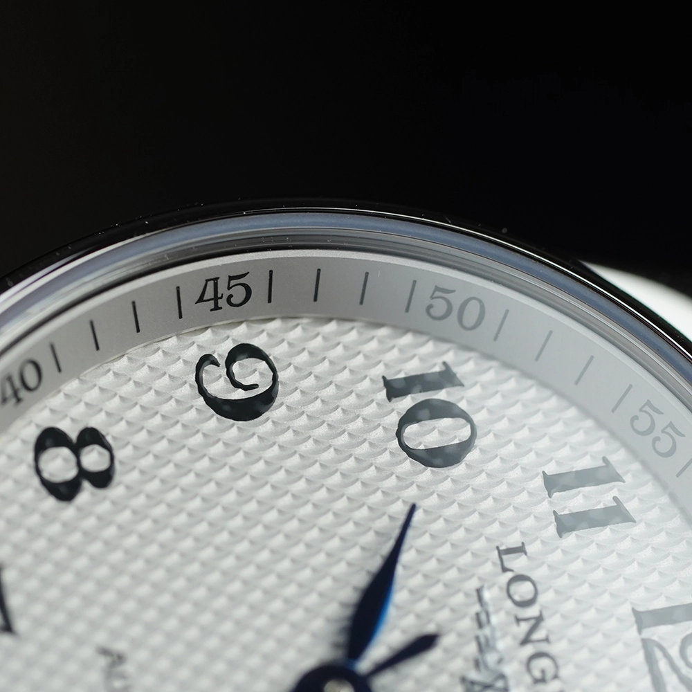 Часы имеют сапфировое стекло устойчивое к царапинам. Циферблат украшен узором "barleycorn". Прозрачная задняя крышка.