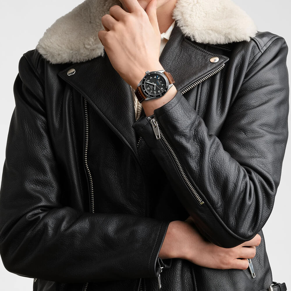 Корпус годинника виконаний із гіпоалергенної сталі 316L. Шкіряний ремінець із регульованою застібкою. Ширина ременя 22 мм.