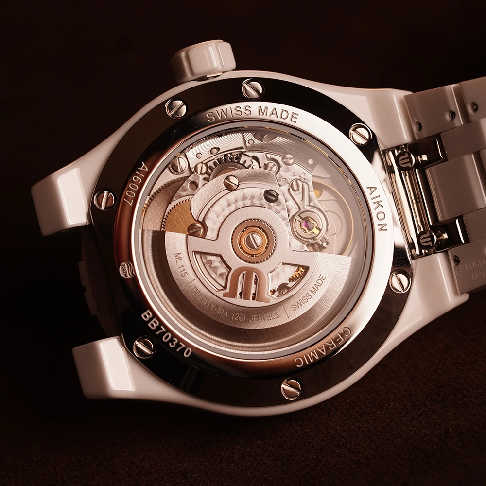 В часах установлен механический калибр ML115 с автоподзаводом. Количество камней – 26. Частота полуколебаний – 28800 в час. Запас хода 38 часов. Есть апертура даты.