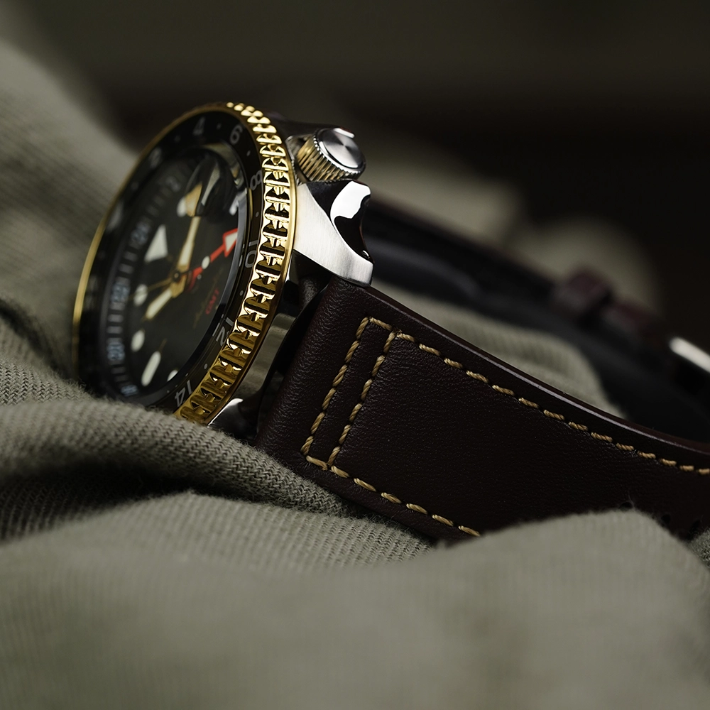 В часах установлен механический калибр 4R34 с автоподзаводом. Количество камней – 24. Частота полуколебаний – 21600 в час. Запас хода 41 час. Есть функция GMT и дата.