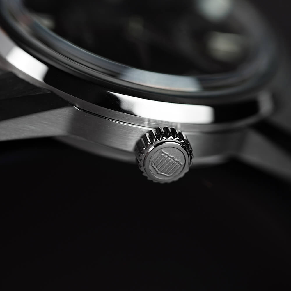 В King Seiko SPB285J1 установлен механический калибр 6R31. Частота полуколебаний - 21600 в час. Запас хода - 70 часов. Есть возможность ручного завода, стоп-секунда.