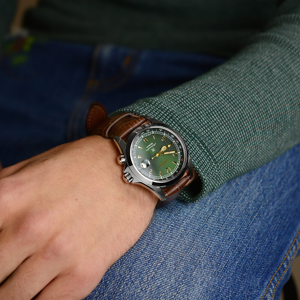 У Seiko Prospex Alpinist SPB121J1 встановлений механічний калібр 6R35. Кількість каменів – 24, частота напівколивань – 21600 на годину. Запас ходу – 70 годин. Є можливість ручного заводу, стоп-секунд.